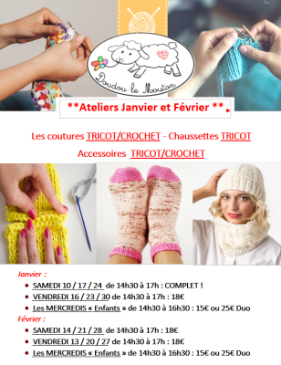SAMEDI 10 / 17 / 24 de 14h30 à 17H : COMPLET